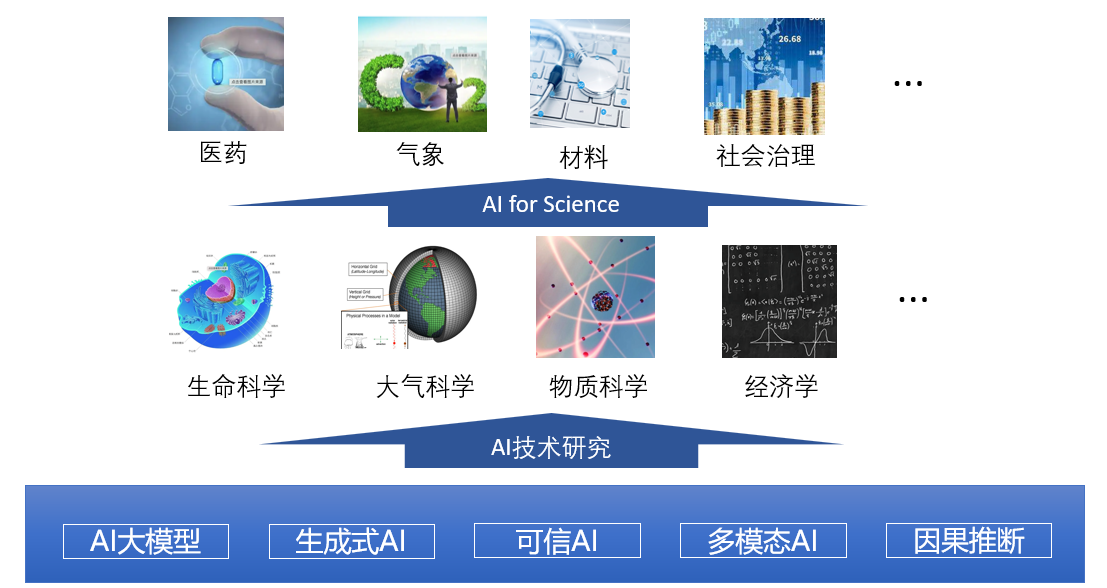 人工智能创新与产业研究院围绕科学智能(AI for Science)展开研究,通过多模态大模型等人工智能新技术对多类别、高维度、跨尺度的海量科学大数据进行建模、推理和分析,为复杂科学场景提供研究新线索、科学新假设,从而推动科学新发现。